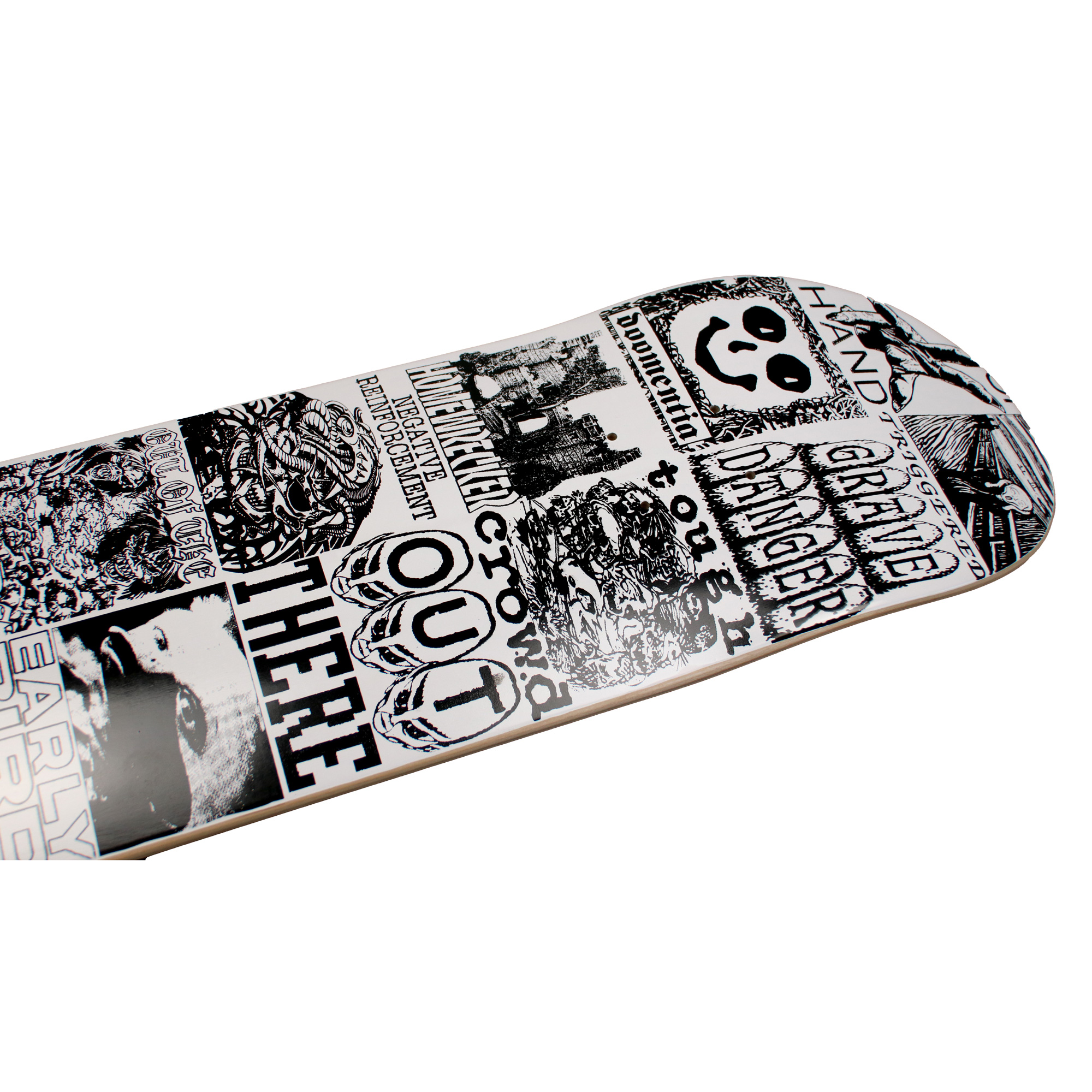 Drawn by Artist Daniel David Freeman, this graphic was a series of images that look like Hardcore, Punk & Metal band flyers and Album covers.
